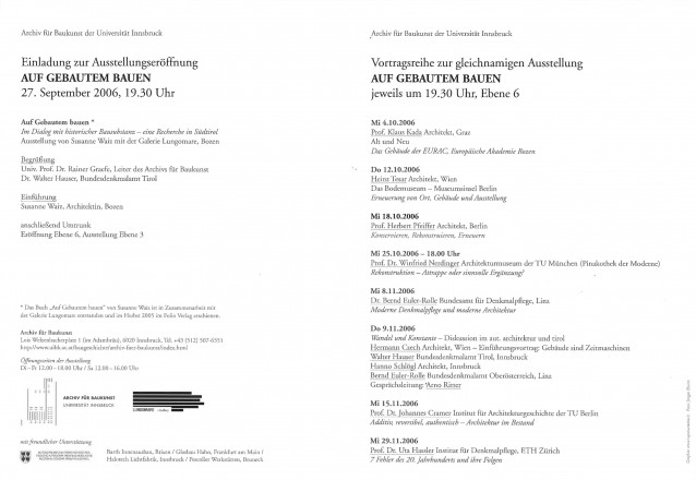 Invito: Costruire sul costruito, Archiv für Baukunst Universität Innsbruck