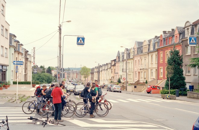 Di fronte a noi si stende un immenso plateau industriale dismesso su cui è stata seminata l’erba. Era la più grande zona industriale della Francia. Negli anni Ottanta Longwy è stata protagonista di importanti lotte operaie. Per chi vi giunge oggi questa superficie offre uno spettacolo stravagante, ma in un certo senso quasi bello. Sul plateau troviamo immense distese verdi e subito accanto zone produttive. Insieme al Lussemburgo e alla regione belga esso costituisce il “Pol european de dévelopment”. A questo proposito si delineano tre diverse strategie per intervenire sui grandi insediamenti industriali: i Francesi li fanno sparire senza traccia, vi seminano sopra un prato e poi passano con il tosaerba. I Belgi li lasciano cadere in disuso, come in questo caso. I Lussemburghesi, che hanno una solida economia, pianificano e convertono le superfici, reagiscono con prontezza e realizzano in fretta i progetti. Loro sono stati in grado di trasformare una società industriale in una società di servizi.