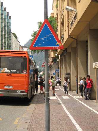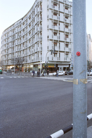 The work “x-ing” by Martin Siegrist refers to the urban landscape and the perception of its boundaries. Through the installation of four road signs, the observer is invited to recognize the limits of our urban landscape and to measure themselves against it. The banality of the everyday object of the “ladder”, represented on the signs becomes an instrument of analysis, a catalyst that highlights and displays the invisible limits of the urban landscape.