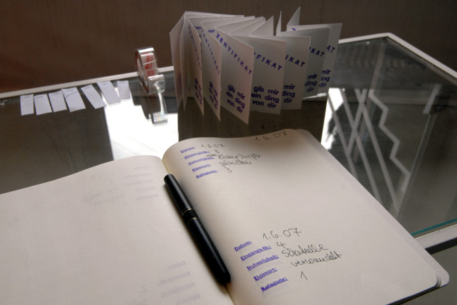 “Give me something of yours” is a project that deals with the everyday personal relics of our society. Those things that surround us, leftover things, reflect our sensibilities. Trying to separate from them fails, due to the durability of concreteness. For Ruth Geiersberger things are like substitutes for stages of life, lifespan, meaning of life, quality of life, and lifetime “stock cubes”, which preserve and compress memories.