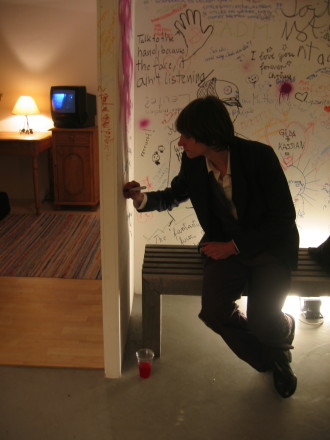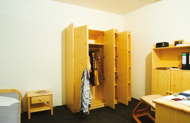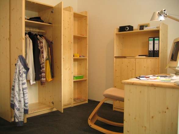 Society and search of identity as a possible expression form in fashion design are therefore the main spring in their work. These connections are reflected in the exhibition spaces: these become the bedrooms of the Bernhard Willhelm-Girl and of the Stephan Schneider-Boy. Both the units represent in their spatial organisation the qualities of their inhabitant and consequently their worlds. The Stephan Schneider-Boy likes to sit at his table at the window and work – he enjoys the fresh air, while the Bernhard Willhelm-Girl tosses and turn in her bed and dreams.