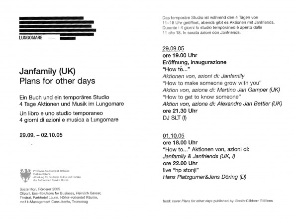 Janfamily explore the things that surround them, and together they create alternatives to everyday routines. “Janfamily – Plans for other days”, their third publication, is a manifesto of their philosophy: it is a ‘how to’ book, a list of proposals on how to relate to our everyday life. By offering solutions to problems such as ‘How to grow attached’ and ‘How to outlive danger on safe ground’, we are invited to revisit the simple things in life that are often ignored or unnoticed. “Janfamily – Plans for other days” is a humorous yet touching presentation of an alternative way of looking at the world.