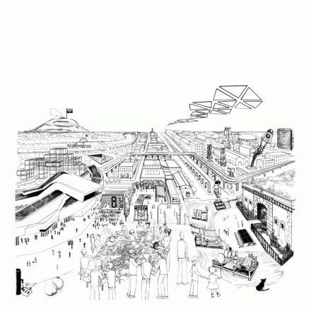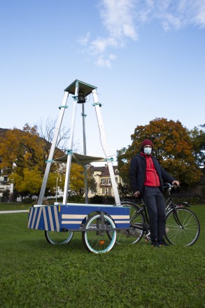 The installation of a megaphone amplifies protesting voices, giving important messages their necessary acoustic strength; Temporary exhibitions can be held on the vehicles, they are equipped with a table that invites you to do things together, a cinema screen for projections, a telescope that is both telescope and kaleidoscope, and flaps and doors that create a temporary space for action.