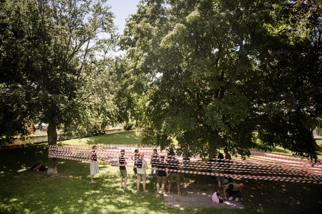 With signal tapes a confrontation place was created to reflect on borders as zones of protection and exclusion.