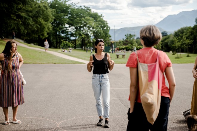 The artist in residency 2020 Lungomare with orizzontale started with three public acts. A series of practical exercises made to explore and re-inhabit the public spaces of the city of Bolzano.