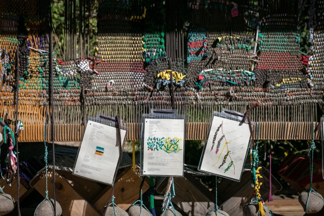 The loom was used for joint weaving actions in the weeks and months after the initiation by several women’s groups from the Donne Nissà network. Thus, the fabric was further developed and more and more stories of gardens from all over the world could be incorporated into the fabric.