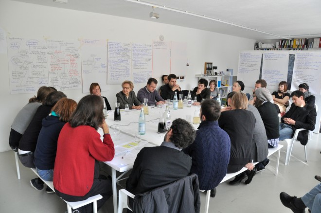 The project will commence with a research week that will be held between October 25th and 30th, 2010. A total of 36 people—including historians, journalists, philosophers, curators, architects, artists, designers, writers, political scientists, and sociologists—will conduct a week-long research session at the Lungomare offices: the objective will be to observe the thematic starting point of the project from a broad perspective. The exchange of ideas and opinions worked out over the course of the week will provide the point of departure for a joint action and campaign carried out in the public spaces of the city by seven designers and artists throughout the course of the year 2011. The question remains open whether this action and campaign will in fact result in a monument or whether the concept of a monument will be demarcated in such a way that this project cannot be defined as such.