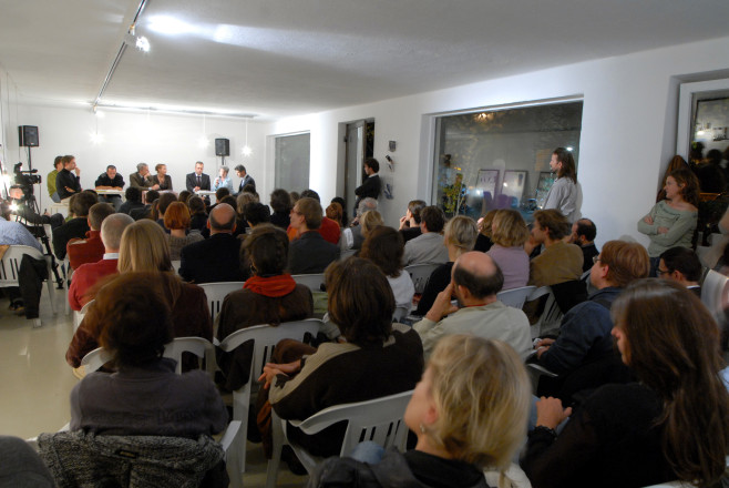 The exhibition is taking the form of a discussion platform amongst local authorities, authors and the public. The calendar features 5 discussion evenings on various themes: politics and media, economy and tourism, landscape and mountains, culture, youth and the social services. Every evening will be attended by three members of local authorities, the book’s two authors, two guests and a chairperson.