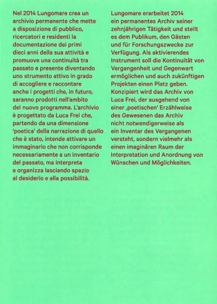 Currently Lungomare’s activities focus on long-term residency projects, a format whereby Lungomare invites guests to engage and interact within the context of South Tyrol. Lungomare’s activities are based on three principles: specific attention to the context in which the association’s projects are undertaken, the transdisciplinary approach that distinguishes these projects, and reflection on the role of Lungomare as a cultural institution in connection with the region in which it operates.